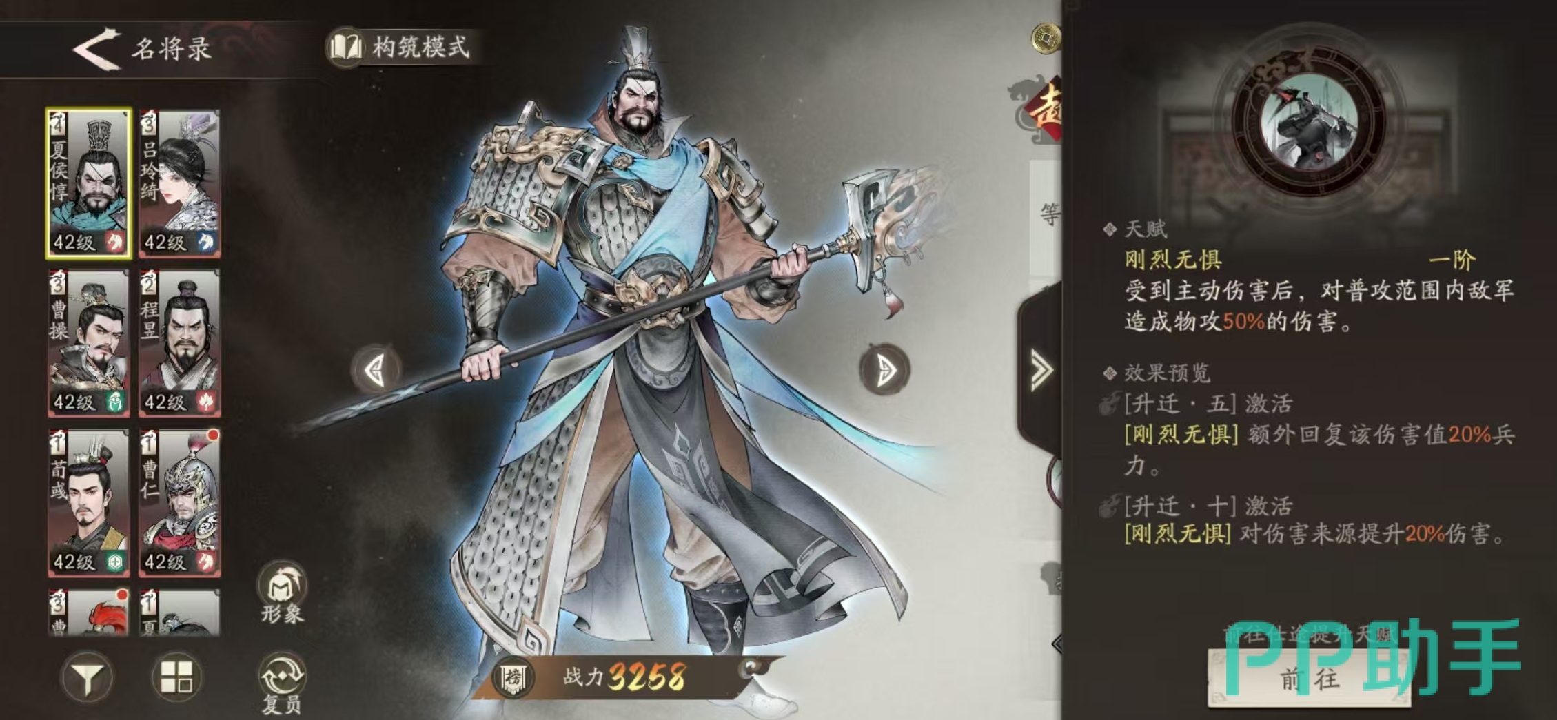 第二位推荐的是于禁,他是合击流体系中的核心存在。当敌方在其攻击范围内发起合击时,会触发其奋战效果,对目标发动连击并造成可观输出。由于该技能具备部分无视防御的特性,在搭配合适阵容时能显著提升整体爆发力。第三位是夏侯惇,这位骑兵将领在游戏开局即赠送,实用性极高。其主动技能可在受击时进行反击并附带吸血效果,兼具生存与持续输出能力。面对小兵密集的副本场景时尤为强势,也是中后期前排阵容的优选之一。
