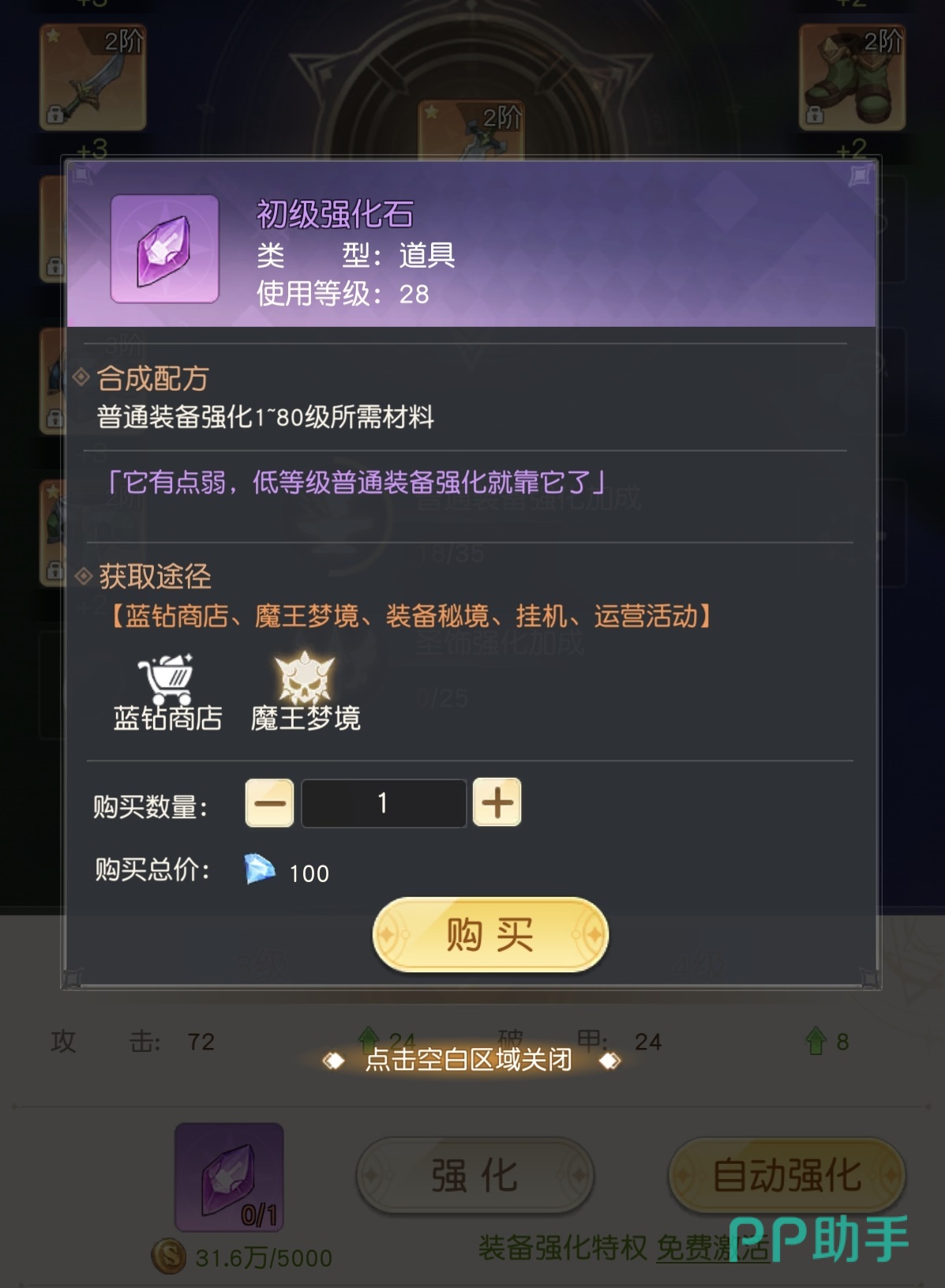 合成系统则划分为三大子模块:饰品合成、特殊合成与道具合成。饰品合成支持升品与真练两种操作,需消耗对应数量的强化石、精炼晶核及钻石资源。升品不改变装备阶数,但可提升基础品质(如从蓝色升至紫色),同步解锁更高阶的附加属性成长曲线;真练则进一步激活饰品隐藏特效,强化战斗中的功能性表现。特殊合成涵盖宠物、天神、精灵与宝物四大类养成单位,其核心逻辑为“5合1”材料聚合模式——例如集齐5个初级圣灵之泉,即可合成1个高级圣灵之泉,实现养成资源的高效提纯与跨阶转化。