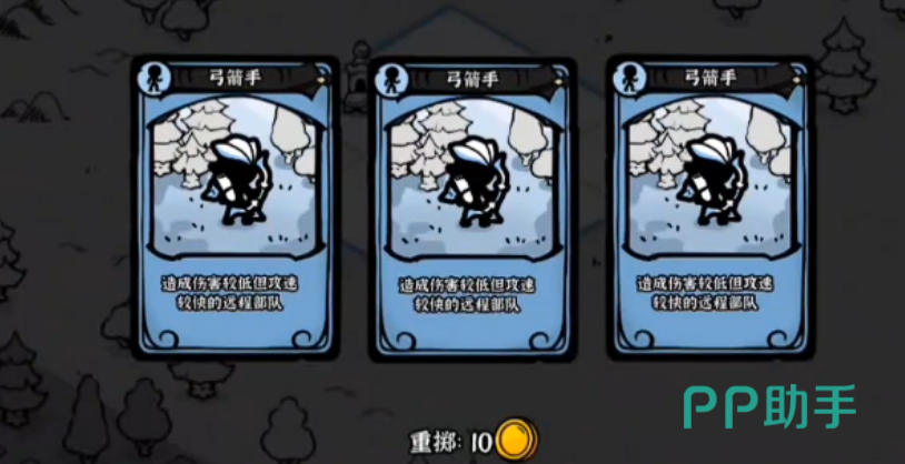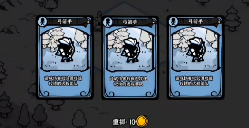 弓箭手为蓝色品质远程单位,基础攻击力偏低,但攻速优势显著,适合填补前期远程火力空缺。当多张弓箭手集中出现时,可迅速组建低成本远程输出线,有效压制中距离敌方单位,是新手过渡阶段的高性价比选择。