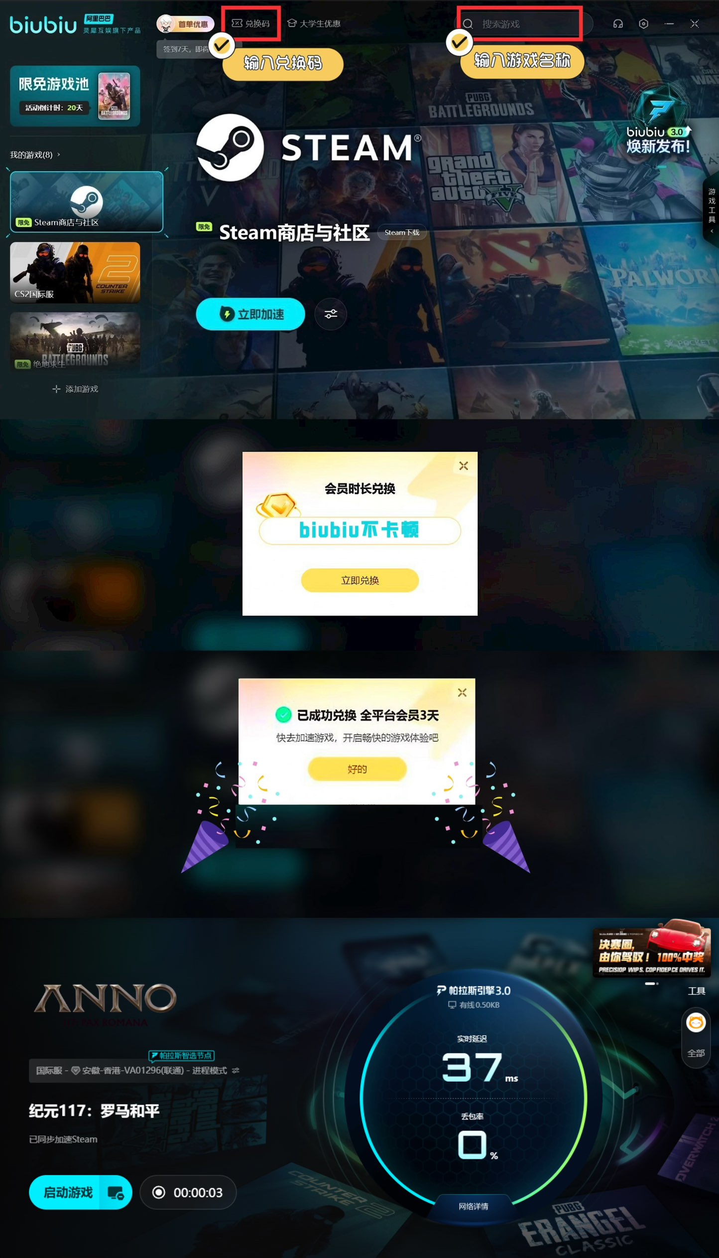 平台还为新注册用户提供专属福利,首次登录即可获得24小时免费加速时长,无需付费或绑定支付方式;此外,所有用户均可通过参与【biubiu不卡顿】活动,额外领取72小时加速权益。累计近百小时的高品质网络优化服务,帮助玩家在无干扰状态下专注城市建设、资源调配与文化路线规划,深入体验策略经营的乐趣。
