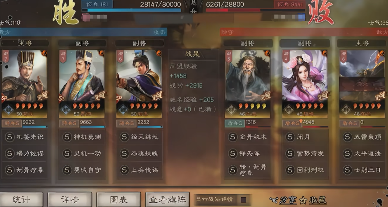 在战法配置方面,经过多个赛季实战验证,主流顶配方案已趋于稳定。SP荀彧主将位首选“竭力佐谋”与“刮骨疗毒”,加点全智力,兵书推荐“援其必攻”,并搭配“励军”“掩虚”两个战法节点。该组合既能削弱敌方属性,又能对全队实施定向治疗,是整支队伍续航能力的核心保障。