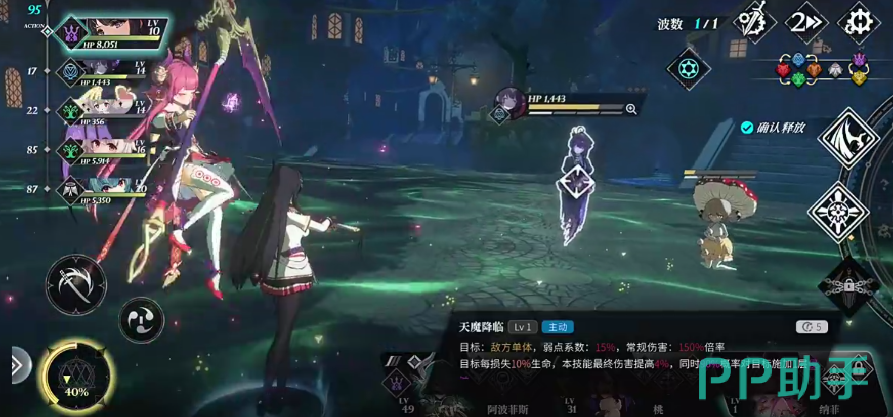 作为一位四星级的输出型角色,纳菲的核心被动“天魔降临”能够在她所凭依的魔女受到攻击时,提升1.8%攻击力,该效果最多可叠加至10层,具备一定的持续增伤能力。她的主动技能“魔王乱舞”能够释放黑暗能量,向前方敌人发动多段斩击,造成80%弱点伤害与148%常规伤害,并依据目标已损失的生命值额外提升最高25%的输出,残血收割能力相当可观。