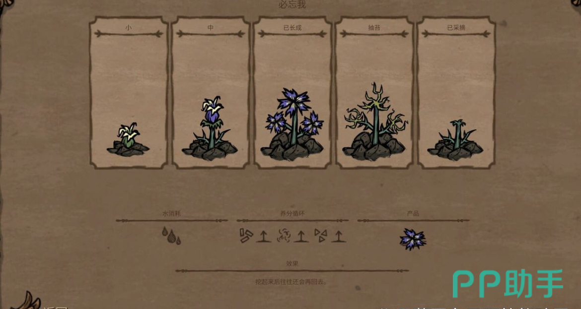 第4种必忘我,它也是一种非常良好的消炎植物,配合蜂蜜和冰块可以做舒缓的药物,能让你的伤口好的更快,可以快速恢复45点的血量,延缓疼痛感,大量种植这个草药,可以在需要的时候直接使用。