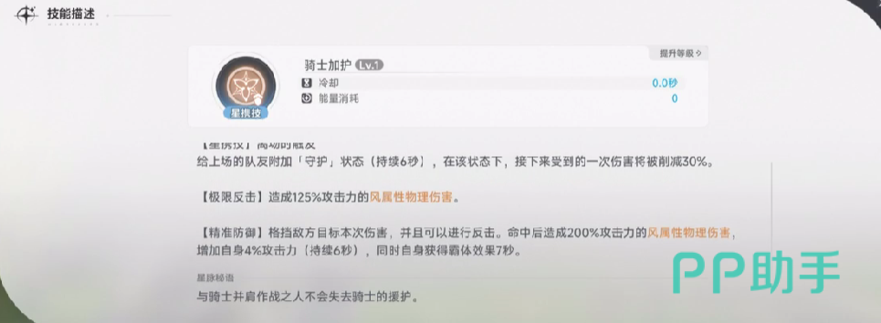 该技能属于星携类型,当莉莉退场时自动触发,为下一位登场队友提供守护效果,持续时间为6秒。处于该状态下的队友在首次受到伤害时可减免30%的受击数值;若成功完成极限反击,则能打出125%的风属性物理伤害,有效衔接团队作战节奏。