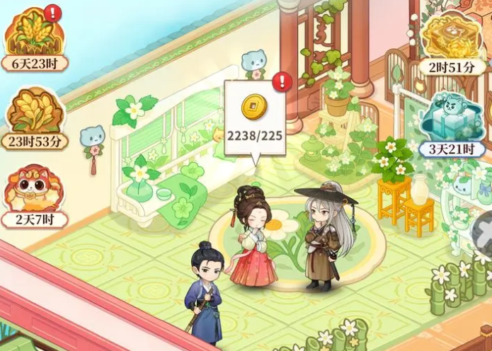 资源充足后,合理分配成为关键。材料不仅要用于当前订单需求,还需兼顾茶楼升级与设施扩建。三者协同发展才能避免发展停滞。后期随着角色解锁,可与其互动以触发专属剧情,完成剧情后往往能激活角色技能,带来显著增益效果。