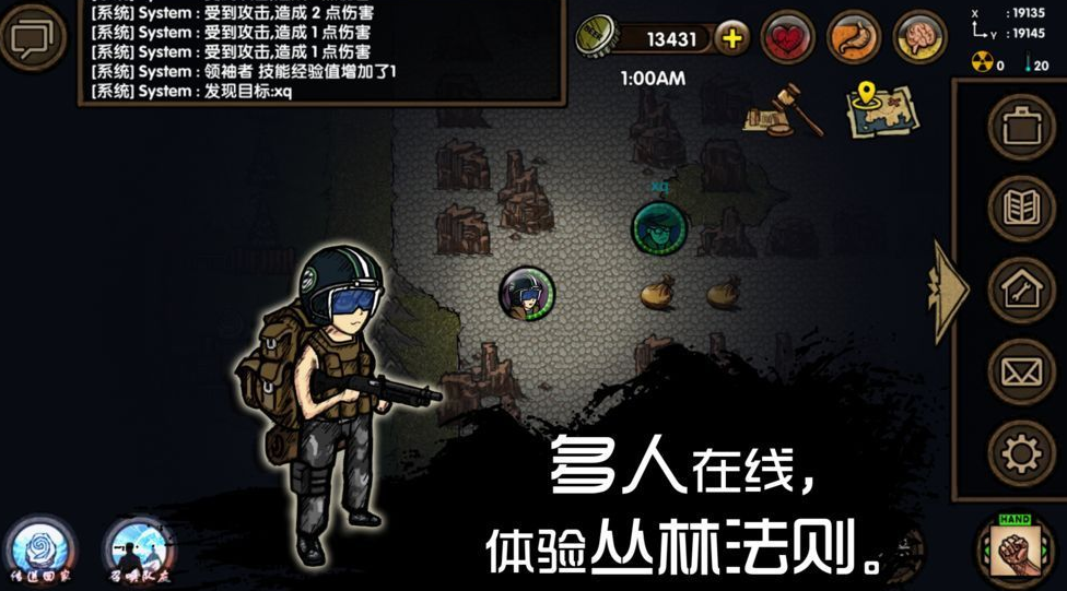 游戏的画面就像是那种末日废土的感觉,黑漆漆的手绘的风格又给它增添了几分独特的韵味。你想象一下,在一片荒芜的土地上,四周都是废墟,只有你的角色孤独地站在那里,是不是就有那么一点“世界末日,我独自求生”的感觉?在这个游戏中,你可得好好控制你的人物。因为在这个废土世界里,危险无处不在。你可能要面对饥饿、疾病、甚至是其他玩家的威胁。但别担心,你可以和你的好朋友们一起组队,共同面对这些挑战。你和你的好友们在这个废土上并肩作战,一起收集资源,一起制作装备,那种感觉真是太棒了。
