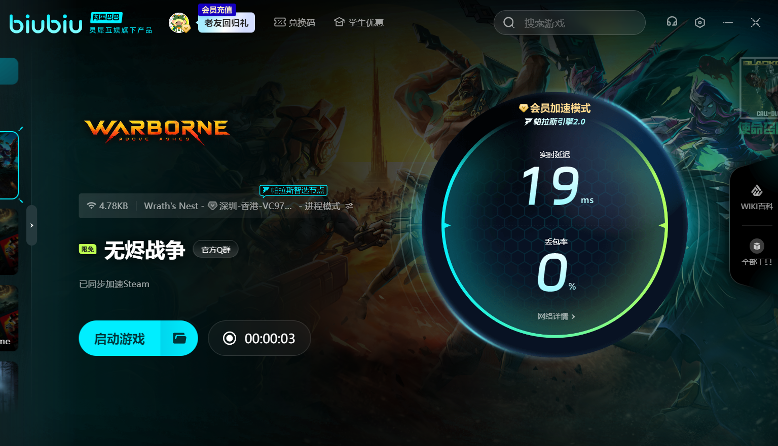 在使用过程中,biubiu加速器的便捷性与专业性也让人称赞。加速效果实时可见,延迟率、丢包率等数据公开透明,你可以随时在后台查看网络情况。一旦网络出现波动,智能节点还会自动为你匹配切换线路,保障游戏稳定运行。此外,biubiu加速器不仅能加速《无烬战争》的本体,还同步支持对Steam商店加速,让你下载更新包的速度大幅提升。