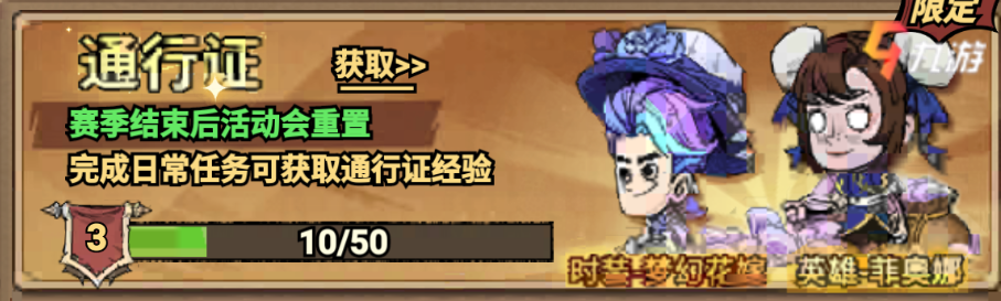 通行证说明:每赛季重置一次,强烈建议同时开通[30元进阶通行证]和[98元至尊通行证]。除可领取时装与钻石外,还可获得新英雄碎片。当前赛季只要持续登录并完成日常任务即可轻松获取全部奖励,任务压力小,性价比极高。