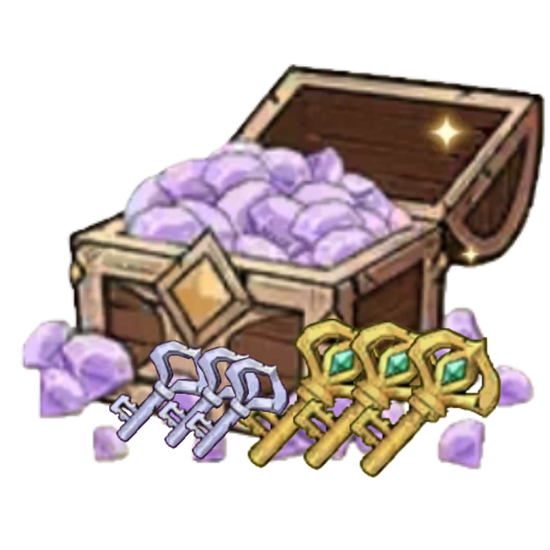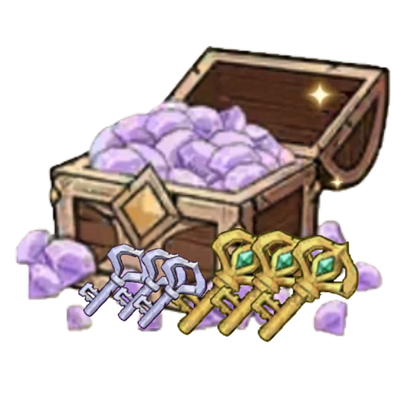 礼包:普通钥匙*10、高级钥匙*10、船长的朗姆酒*10、稀有套装宝箱*1、钻石*2600
