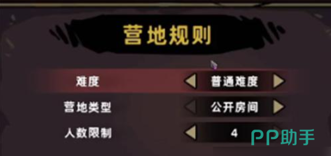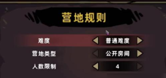 开启本地联机玩法以后,玩家不想要快速匹配的话,还可以自己创建一个房间,邀请其他玩家加入进入,创建房间时,我们需要把难度,营地的类型以及人数的限制给设定好,难度分为普通、困难两个模式,营地类型有公开房间还有密码房间。