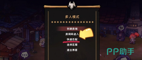 进入到组队的界面菜单以后,我们找到多人模式,多人模式中有创建房间、房间码进入、快速匹配、选择区服、推出界面等多个选项,我们只要点击快速匹配就可以开启本地联机,和自己所在同一城市的玩家一起寻宝了。