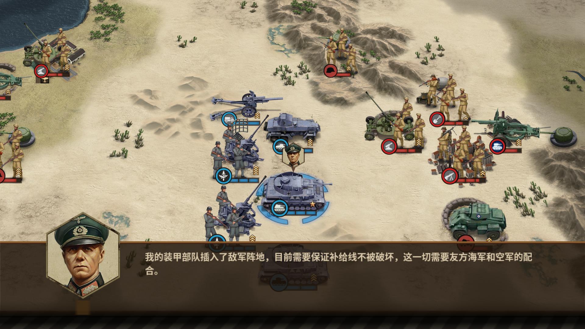游戏采用即时作战模式,玩家化身指挥官,在不同战役中调兵遣将,发挥军事才能合理指挥士兵作战。丰富多样的军种、装备与战略组合,带来极具策划性的体验。同时,多种不同地形与场景的地图,从城市街巷到广袤原野,为玩家提供了多元化的战斗环境,让你深入式感受烽火连天的二战 。