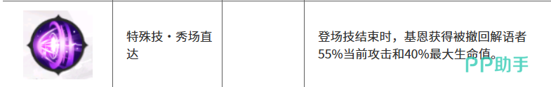 特殊技秀场直达则构建起属性流转的效果,被隔空传送撤回的单位所携带的战斗属性,将以55%攻击力与40%最大生命值的比例转移至基恩身上,形成临时的属性增幅,这种继承效果并非固定不变,其持续时间与被撤回角色的费用消耗直接影响,费用越高的角色带来的增益时长越持久,多项继承效果可以叠加作用,但存在总时长上限,这促使玩家需要在连续作战与单次爆发间做出取舍,实战中常见高端玩家通过卡准时机,在关键回合连续触发多次撤回,使基恩在短时间内堆叠出更高的属性加成。