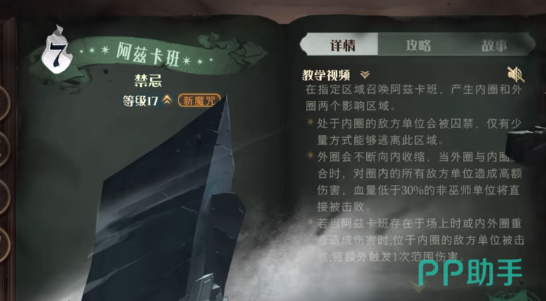 哈利波特魔法觉醒中更新了一个咒术卡【阿兹卡班】,阿兹卡班的攻击方式还是比较特殊的,拥有两个不同的作战区域,在战斗开始的时候,可以在指定的位置召唤出阿兹卡班,而且圈内和圈外是两个笔筒的属性,圈内的敌人会受到一个控制效果!