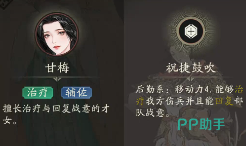 综合来看,甘梅拥有治疗、驱散、战意回复以及群体攻防调控等多项辅助功能,无论是在后排担任专职奶妈,还是作为战术协同者参与前线调度,都能发挥出色作用。多样的适配性和稳定的支援表现,让她成为多种阵容体系中不可或缺的存在。因此,可以明确地说,甘梅是一位实用性极强且综合强度优秀的辅助型角色。
