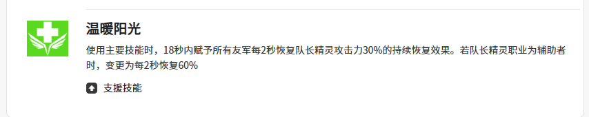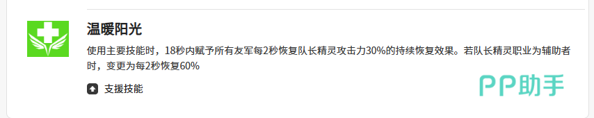 被动技能「温暖阳光」强化团队长效续航:触发后持续18秒,为全体队友提供每2秒30%攻击力的持续治疗;若克拉拉担任队长,则对队内其他辅助角色额外提供每2秒60%攻击力的治疗量,大幅抬高辅助协同效率。