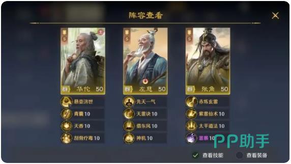 第二套备选体系则侧重持久作战,推荐搭配华佗、左慈、张角。此阵容依赖高阶主动技能释放频率与效果叠加,对技能等级与命中率要求较高。虽无直接获取限制,但需玩家在资源分配时优先升级其核心技能,适合作为中后期补充或特定关卡专项配置。