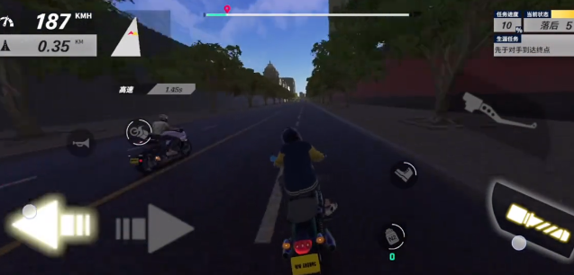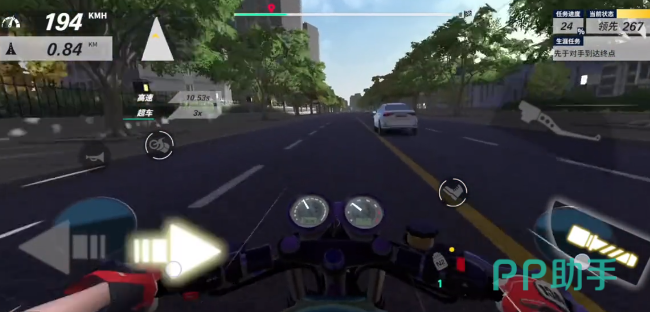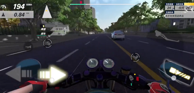 开始关卡的第1个环节就是竞速关卡,必须要直接跑赢人机。人机是很简单的,哪怕用这辆车也照样可以赢,并不需要害怕。在高速上持续一段时间后转弯就可以适当性的减速,刚才高速基本上在20秒左右,那现在就可以适当性的降低。