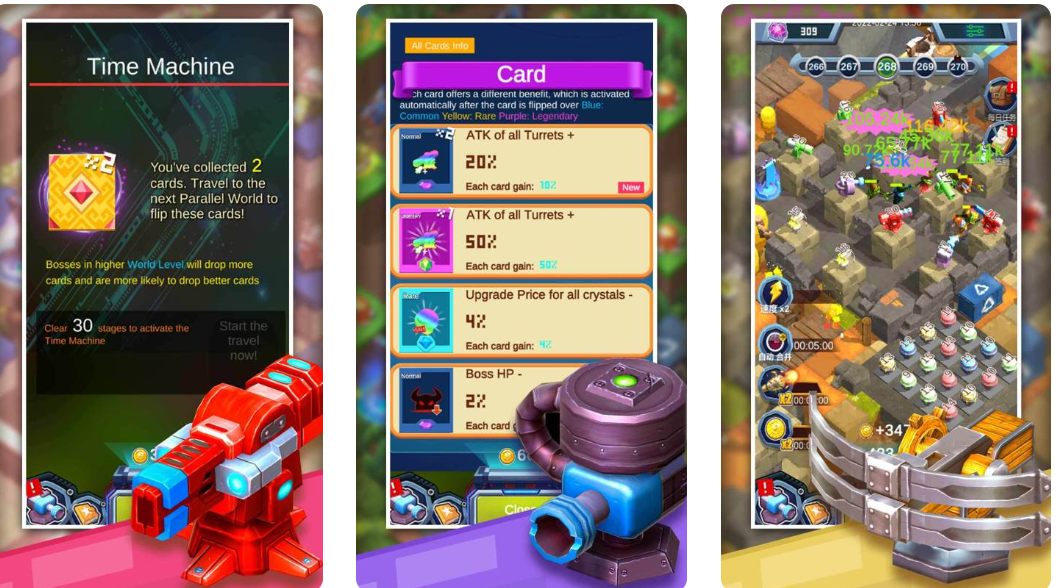 合成塔防王者中的炮台用千奇百怪来形容丝毫不为过。这里的炮台都加入了属性,每一种炮台属性都时不同的。玩家在使用炮台保护自己的家园时,需要根据炮台的属性来进行安置。所有颜色相同、属性相同、等级相同的炮台都是能够通过合成升级为更加特殊,能力更强的炮台。炮台所击杀还都会给玩家带来一定数量的金币奖励。