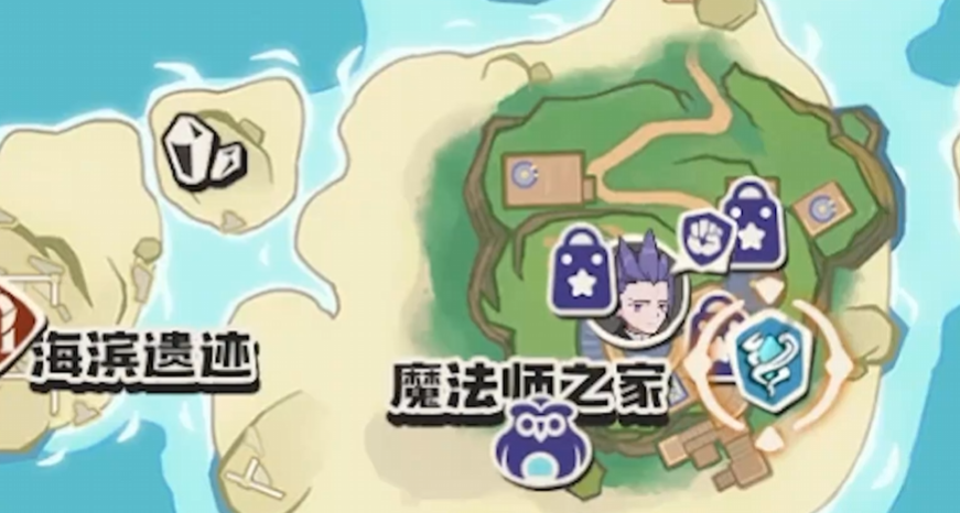 该精灵固定刷新于新手村左下方群岛区域——海滨遗迹。具体路径为:从沙滩上的大型眠枭庇护所出发,持续向西行进,穿越开阔海滩后抵达群岛;遗迹入口位于群岛北侧背面,需绕至侧面方可进入。