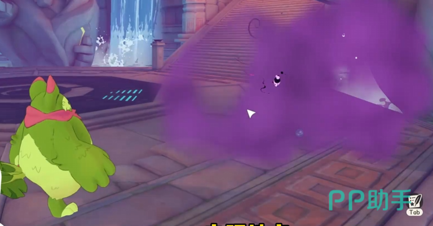 进入遗迹后沿右侧通道前行数步,即可在楼梯两侧水域发现海枝枝。推荐携带草系或电系宠物出战,利用属性克制达成2倍伤害效果,有效压缩其血量并提升捕获效率。