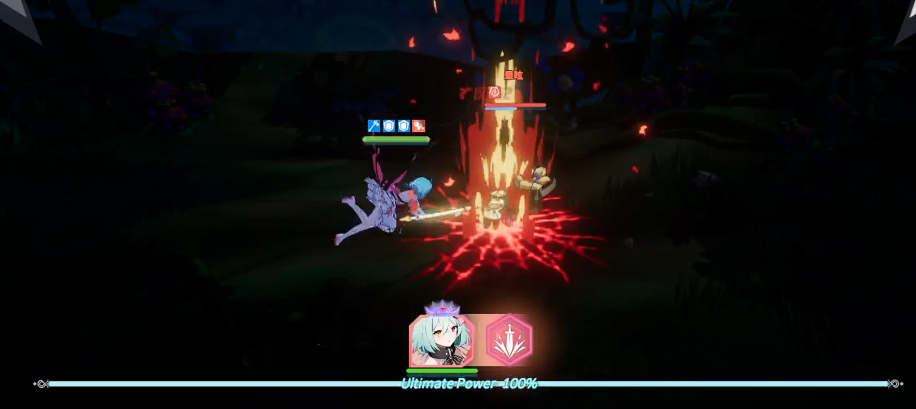 一技能【垂直执行】本质为高控场召唤技:主动施放后立即召唤梅尔菲斯协同作战,并对最近敌方单位发动垂直突进打击,造成390%攻击力的物理伤害,同时附加2秒强制眩晕。该效果在“独行要塞”模式下进一步强化——布莱斯自身获得持续12秒、减伤32%的生存加成;而在“双子刽子手”模式中,此技能暴击率提升至必中层级,且基础伤害额外提升至300%。