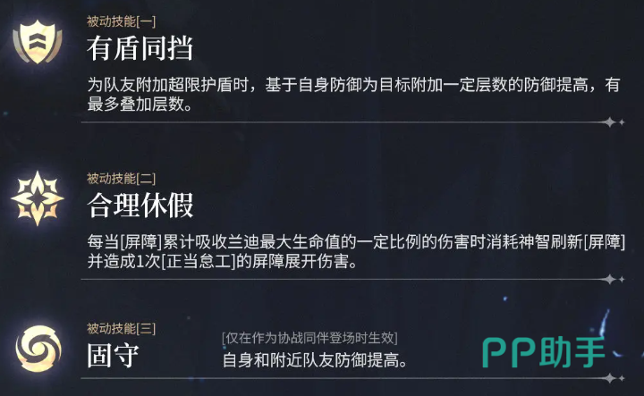 该技能最多可叠加10层“超限护盾”,每层提升角色2%的防御力,极大增强了团队整体生存能力。当护盾值归零时,还会对周围敌人施加持续3秒的麻痹效果,实现有效的控场作用。而兰迪的被动特性则进一步强化了其雷属性优势:在护盾生效期间,所有非垂线类伤害均可获得20%的雷属性附加伤害加成。
