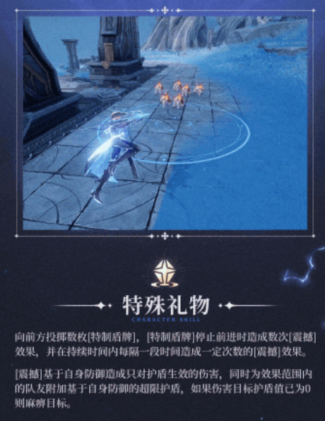 这一机制使得兰迪的屏障不仅能用于抵挡攻击,还可作为战术控制手段。值得注意的是,当屏障吸收伤害达到总量的70%时,刷新时间会相应延长,因此在实战中需密切关注护盾剩余量。配合其协同技能“特制盾牌投掷”,兰迪可在前方投出一枚盾牌,每3秒触发一次范围性震撼伤害。该伤害基于兰迪自身的防御力与护盾值进行计算,并能为队友提供可叠加的防御增益效果。