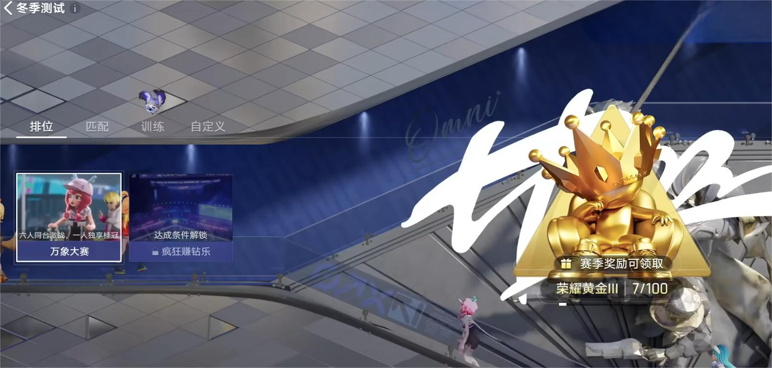 排位系统采用双轨制设计:其一是“万象大赛”常规模式,面向全体测试用户开放,以标准段位晋升机制驱动竞技成长;其二是“门票战斗·疯狂赚钻乐”模式,需满足特定条件(如达到钻石段位或完成指定成就)方可解锁,该模式侧重资源积累效率与高阶策略组合验证,尤其适合资深策略玩家深度钻研。