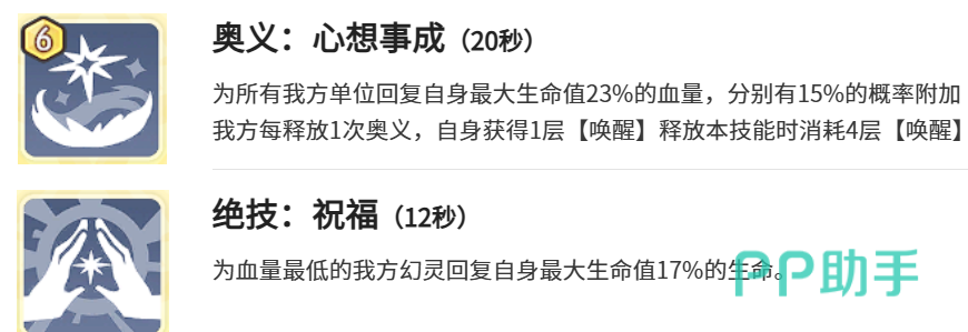 奥义技能同名“心想事成”,冷却时间20秒,单次可为选定友方恢复其最大生命值23%的血量。每次释放奥义将为祈愿神灯积攒1层“唤醒”效果;累计达4层后,下一次奥义必定激活天赋全部触发层级(即双触发或三触发),实现群体高量治疗+多重增益同步生效,是团战翻盘的核心枢纽。绝技冷却12秒,具备自动索敌逻辑,优先治疗当前生命比例最低的队友,回复量为该目标最大生命值的17%。