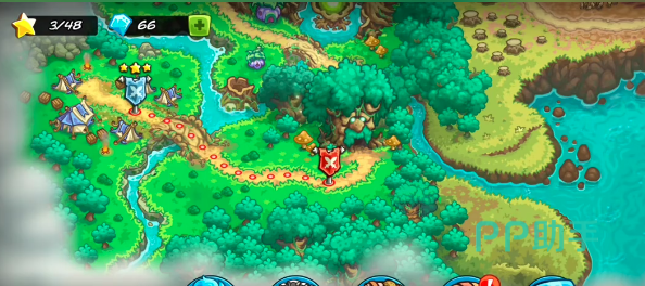第二关:本关名为守卫之门,开局即拥有两位英雄角色。上下两条路径是主要行进路线,需在这两个入口处分别设置骑士塔。地图中央可能出现高速移动的割喉鼠,建议及时释放英雄技能实现快速清除。后续出现的獠牙斗士具备高护甲属性,此时建造法师塔可发挥更强打击效果。此外,场景中存在可互动的大树机关,虽触发概率较低,但具备范围伤害与减速功能,合理利用可在关键时刻提供支援。推荐在敌人必经之路提前布置攻击型防御塔,形成密集火力网。