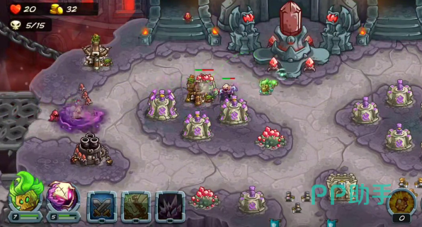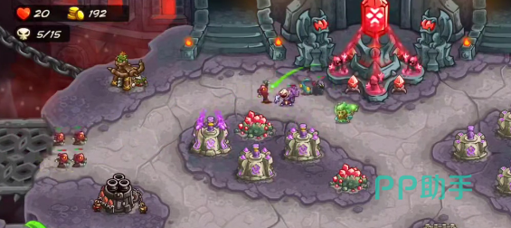 第四关:翡翠树梢这一关的重点在于战术搭配。建议在此处建造两座炮塔,并在其旁配置兵营增强拦截能力。英雄选择方面,推荐启用第一个和第三个英雄,因其具备对空作战能力,能够有效应对飞行单位。其余空位可用于补充法师塔,强化整体输出。该关卡中还藏有特殊彩蛋——外形类似萝卜的小屋,每次仅会生成一名树精灵,总共可触发两次。
