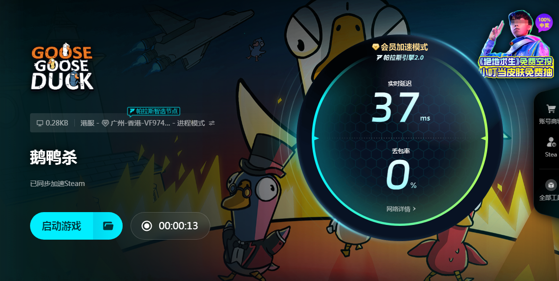 鹅鸭杀这个游戏趣味程度还是比较够的,人越多,混在一起越好玩,再加上还有不少地图可以选择,身份也多,在埃及沙漠图里面还有沙尘暴以及木乃伊怪物,玩起来更刺激。现在加速器也推荐完了,我们用上网络超级稳定的,不卡顿,不掉帧跑起来肯定很容易的。