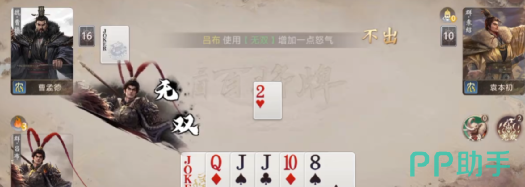 针对吕布的应对策略需围绕“节奏控制”与“资源管理”双线展开。一方面,在怒气未达6点前,应主动清空手牌,避免形成易被回收的J/Q/K组合;另一方面,需有意识延后高点数牌的释放时机,防止其一次性回收多张关键牌型。这要求玩家实时观察全场出牌动向,动态决策压制或弃权,而非仅依据自身手牌结构做判断。
