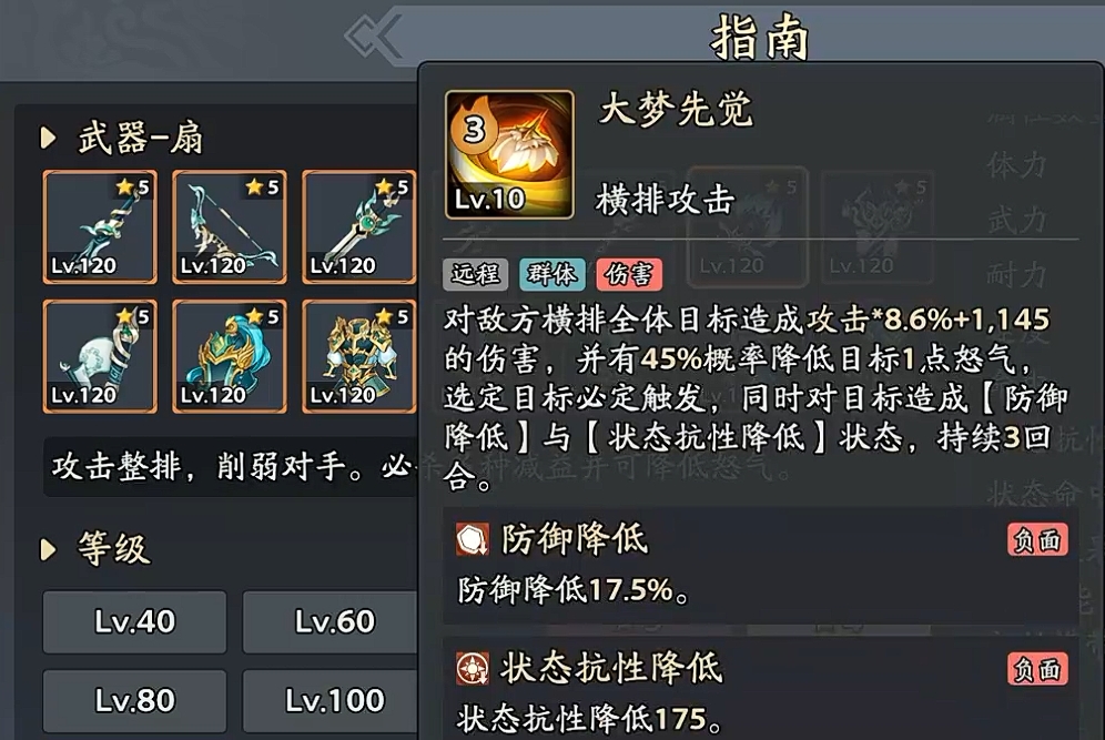 以施加负面状态为核心定位的辅助职业,技能“大梦先觉”可同步降低敌方防御力与状态抗性,并有概率削减1点怒气值。其减益覆盖率与功能性适配度,使之成为PVE开荒与PVP阵容构建中的常驻配置。
