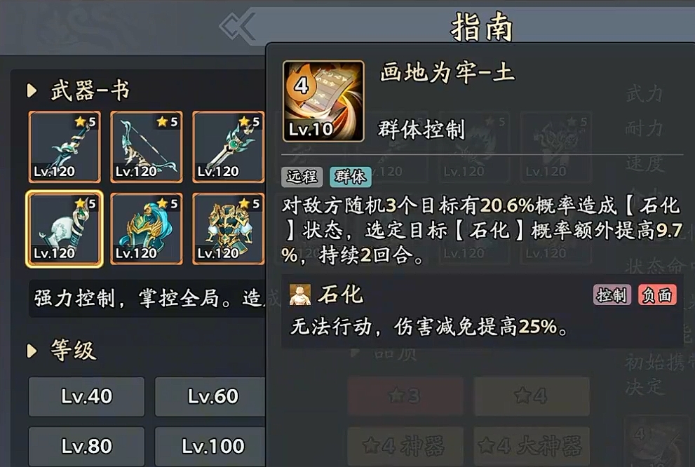 强控型职业代表,装备书类武器后解锁技能“画地为牢”,随机选取敌方3名单位施加石化状态;处于石化状态的目标将完全丧失行动能力,包括普攻、技能释放与位移,控制时效性强、适用范围广,兼顾PVE机制破解与PVP节奏压制双重需求。