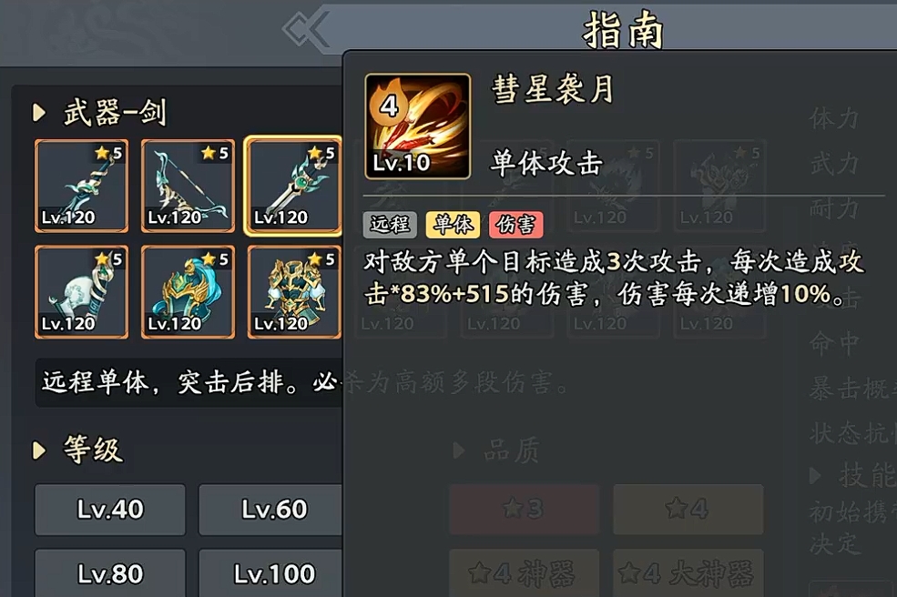 专注多段式单体输出,技能“彗星袭月”连续打出3次独立伤害,每次命中均能叠加10%基础伤害增幅(可叠乘),配合被动持续增伤机制,在Boss战等长周期目标战斗中输出曲线稳定攀升,是PVE主力DPS的典型代表。