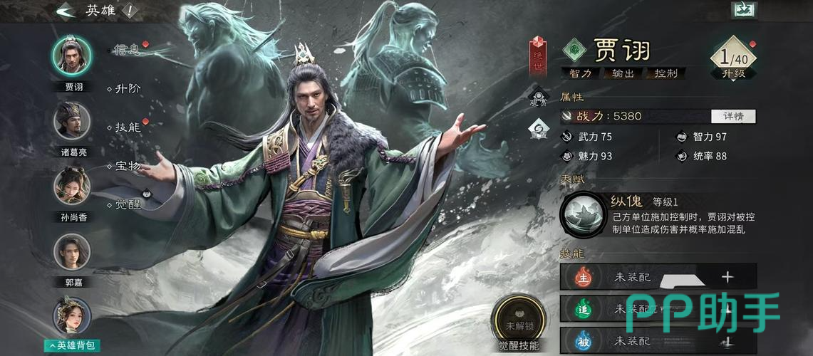 作为整套体系的中枢,贾翊的天赋“纵傀”是控链生效的关键枢纽。该技能在命中已受控目标时,除造成智力伤害外,还将额外赋予混乱状态。一旦敌方单位陷入混乱,不仅当回合行动失效,更可能因指令错乱而攻击己方单位或空放技能,进一步放大我方控制收益。