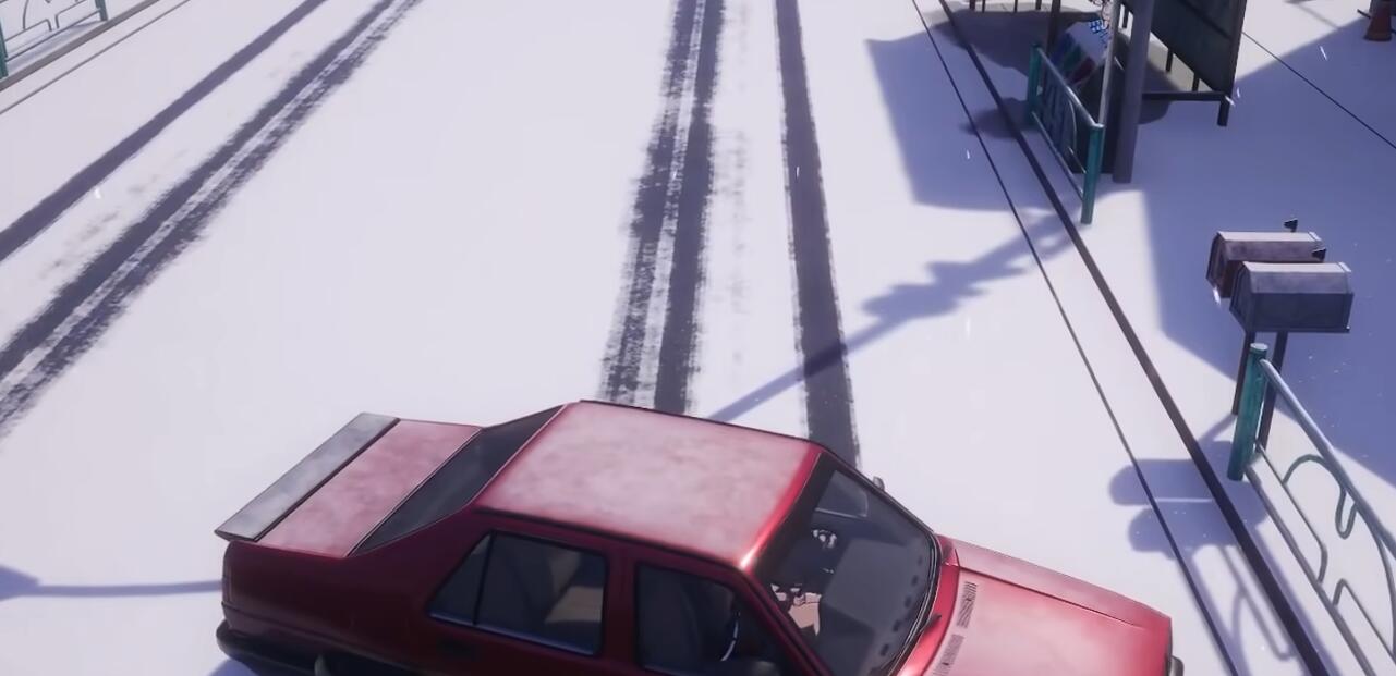 在雪天环境中,最直观的感受来自场景与载具的积雪变化过程。车顶的积雪会从零星散布逐步演变为厚厚一层覆盖,通过触控还能观察到雪花滑落的动态反馈。车辆驶过后形成的车辙与角色移动时踩出的足迹,并非静态贴图实现,而是结合新型特效叠加与粒子系统所生成的立体痕迹,部分材质如金属地面甚至能呈现出脚印下陷的真实反馈。不过当前脚印模型仍以长条形态为主,与实际足印存在差异,推测为性能优化考量所致。此外,所有痕迹保留时间约为30秒,随后会被新降落的雪花逐渐掩埋。