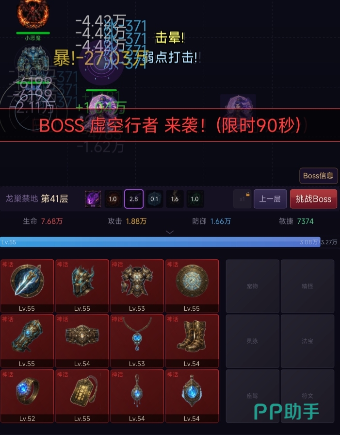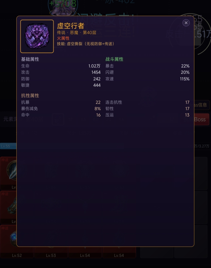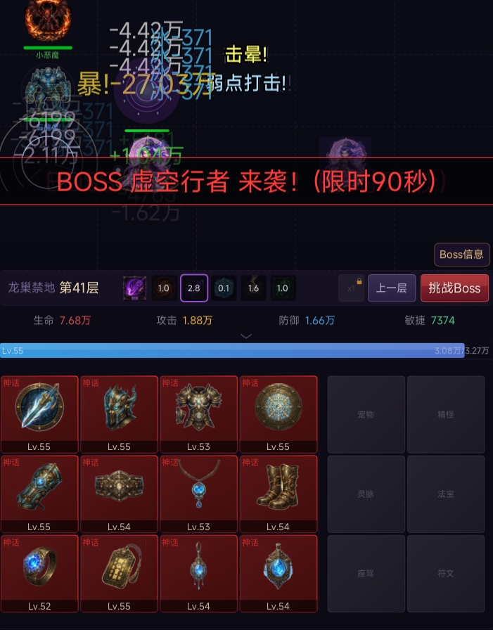 游戏采用垂直递进式地牢结构,初始位于第一层,击败普通敌人积累基础装备,挑战每层专属守关Boss后解锁下一层。层数越高,怪物强度与掉落品质同步提升;若当前战力不足,可自由退回上层重复刷取资源,实现弹性难度调节。所有Boss均支持主动召唤,且属性面板全程公开——包括血量、抗性、技能机制等关键数值,便于玩家预判战力需求,制定合理突破节奏。
