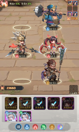 角色养成采用“主角驱动+全员共享”双轨机制:主角每提升1级,除获得对应等级领悟宝珠外,所有武将同步享受基础属性加成;后期可通过消耗进阶石强化主动技能效果。升星系统支持定向任务达成,每次升星均带来固定数值提升,与等级成长形成互补,共同构成战力跃迁的核心路径。