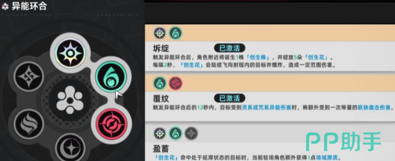 当环合系数达到满值,将激活“异能环合”状态,并同步解锁三项专属增益效果。在此状态下,角色输出强度实现质变提升。其中,“覆纹”效果可在12秒内持续施加灵系或咒系伤害,同时额外赋予等量“联袂邀击”伤害,从而强化多元素协同输出能力——不同属性间的配合逻辑并非简单叠加,而是需依据角色特性与技能机制进行精密编排。
