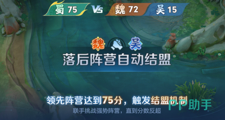 玩法内置“合纵连横”动态联盟机制:当任意一方率先累积至75分时,其余两个阵营将自动结盟,合力遏制领先者。然而联盟状态并非固定不变——一旦某方反超成为新领先者,敌我关系立即转换,局势随之重构。这种不断演变的三方博弈极大提升了策略深度与临场应变要求。
