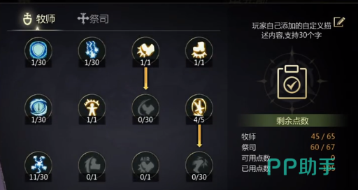 在自用加点等方面可以舍弃两点顿当,然后选择连锁闪电。此外可以选择6点雷电之手,6点闪电风暴。将点数可以放在无声打击,还有光明之呼吸上能够增加伤害。