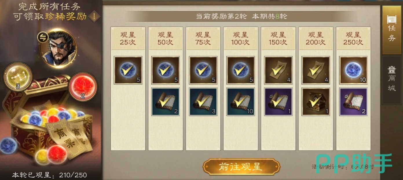 每周也有必须要完成的任务哦,比如参与山海集市看看有没有装备可以捡漏,比如如果看到宝雕弓的话就一定拿下,这个装备能增加弓兵的攻击距离和伤害,让弓兵在战斗中发挥更大的作用,新手玩家还可以加入同盟仓库来交换材料,也通过悬赏令等活动定向获取自己需要的材料,材料上面主要收集一些武将需要的,比如点将台当中大家可以兑换到什么武将一定要优先兑换,这对大家前期组队有好处。