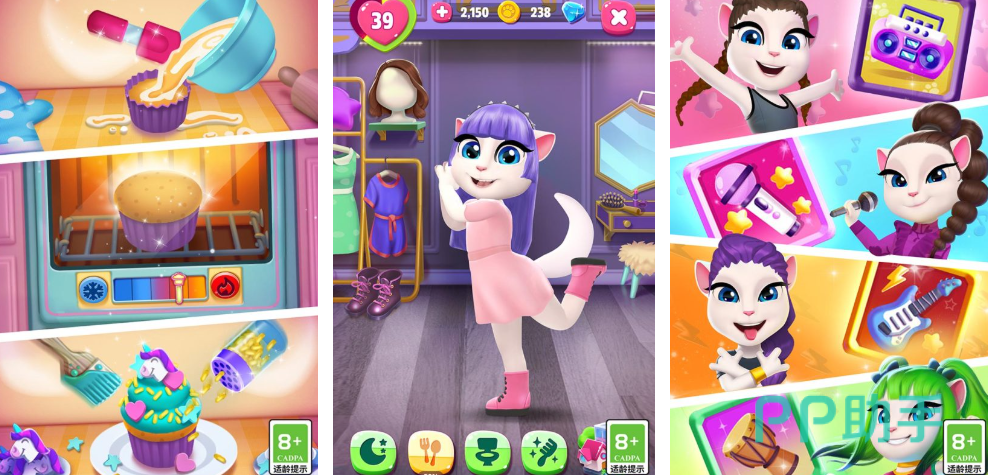 我的安吉拉2这款游戏让玩家悉心照顾一只叫安吉拉的猫咪,在照顾的时候,需要从饮食,卫生,甚至到睡眠都需要安排到位。其实安吉拉长得非常的漂亮,再加上它还有可爱的动作表情,让越来越多的玩家对它十分的喜欢。在整个游戏中,有众多的任务需要挑战,还有彩妆变装等等玩法。在这样的情况下,玩家可以给安吉拉挑选合适的眼影,口红等等,给它来个大变装。