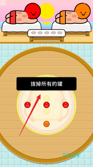在游戏中,每位患者进入诊所时面部都会呈现出不同的颜色状态,如红色或橙色等,这些颜色与屏幕底部转盘上的拔罐器一一对应。玩家需要根据病人脸上的色调,将正确颜色的罐子放置到其身体指定区域。当患者的脸色恢复至正常状态,表示治疗成功,该角色便会离开,随后下一位患者将接续到来。若发现当前罐子颜色无法匹配,可通过旋转转盘来调整罐子的位置顺序,以便完成配对。