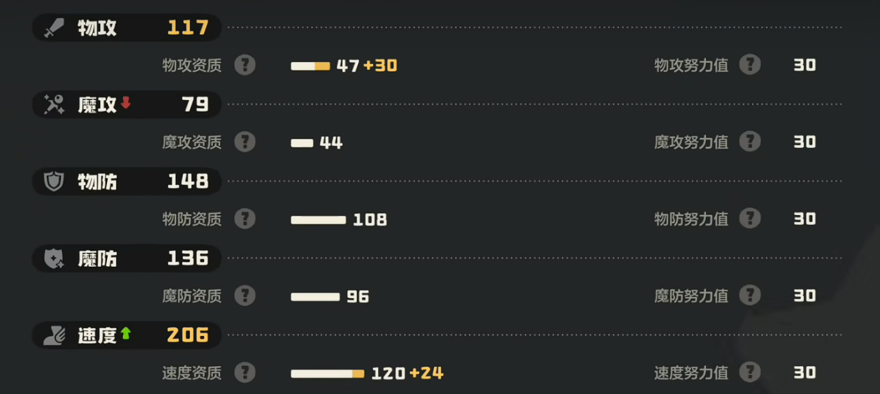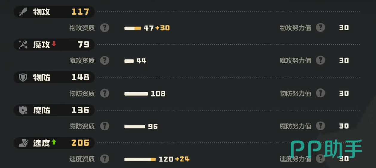 从种族值来看,咔咔鸟并非传统意义上的高攻型宠,物理与魔法攻击成长相对平实,但耐久表现突出:基础生命值达150,防御108,魔抗96,三围共同构筑了扎实的承伤能力。速度种族值优异,是保障先手权的关键所在——唯有确保行动顺序靠前,才能稳定触发“咔咔冲刺”的连击机制。推荐努力值分配方案为:生命+防御+速度,满加点后生命值可达约374,防御数值同步提升,整体生存容错率大幅增强。