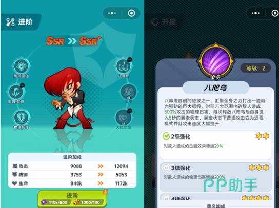 八神庵——首推的双形态战术核心。开局通过新手成长礼包即可稳定获取两星,无需抽卡。其必杀技具备大范围物理伤害,释放终极技能后进入持续8秒的暴走状态:近战角色可即时切换为远程站位,在后排持续压制输出,敌方难以近身。虽基础防御中等,但暴走状态下攻速显著提升,适配普通关卡与精英副本,实战容错率高、操作下限低,是新人快速建立战斗节奏的关键角色。