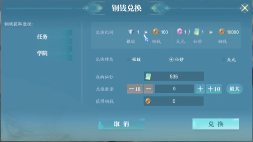 除此之外,玩家也可以选择购买阅览藏书、奖学金或者是今日仙历等等,通过这几种方法也可以获得所需要的货币。今日仙历这就相当于是每日礼包,玩家每一天都可以领取自己所需要的材料。